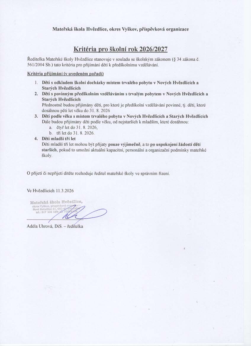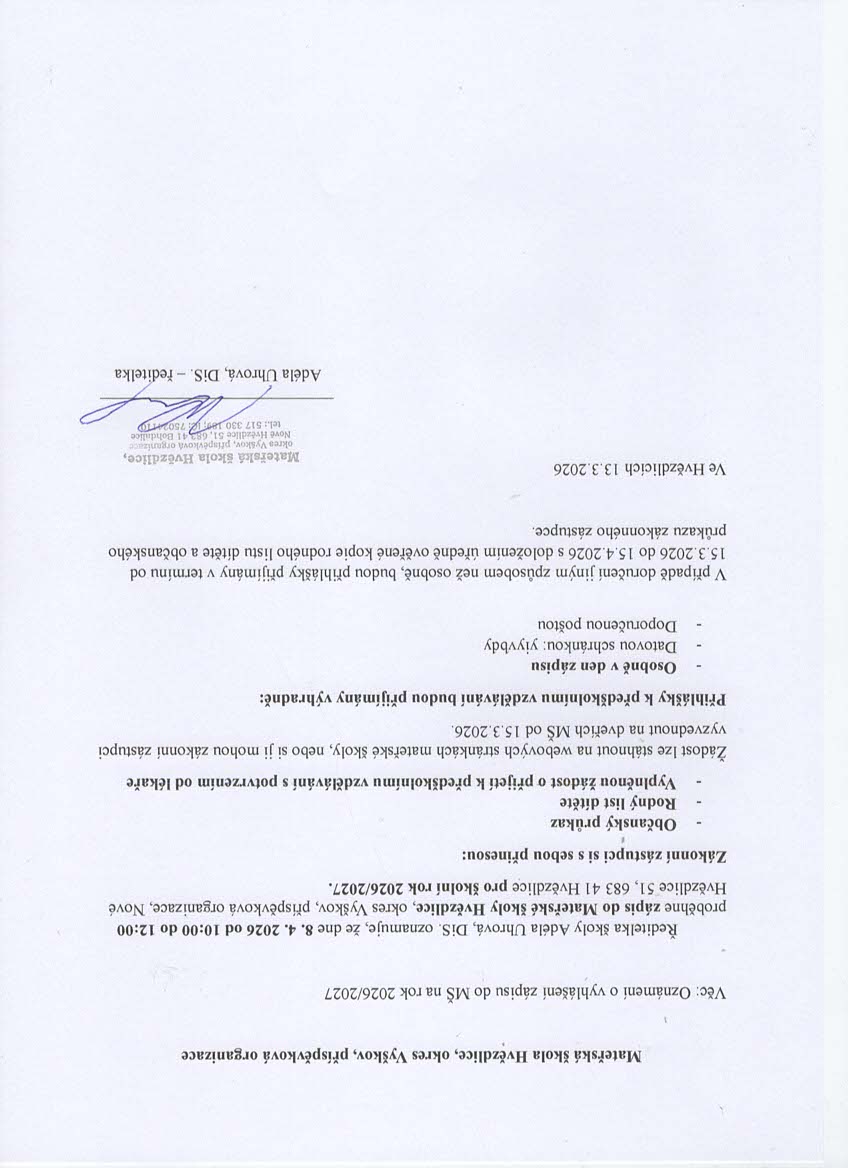 Zápis do MŠ Hvězdlice